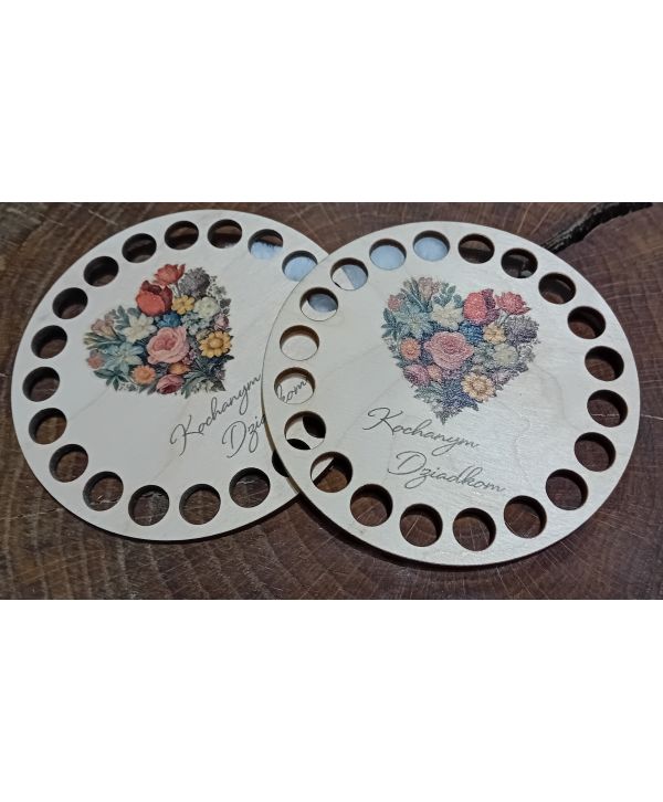 Drewniana baza/wieczko do koszyka, wykonane ze sklejki o grubości 3mm z personalizowanym tekstem, życzeniami.