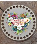 Drewniana baza/wieczko do koszyka, wykonane ze sklejki o grubości 3mm z personalizowanym tekstem, życzeniami.