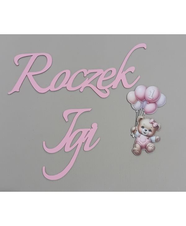 - Napis Roczek + imię, szerokości maksylanie 40cm, wysokości ok. 30-36cm (w zależności od imienia),