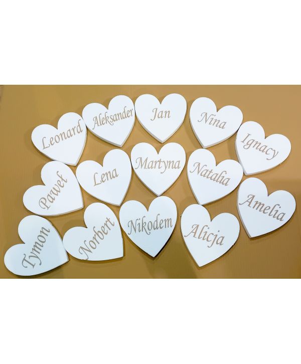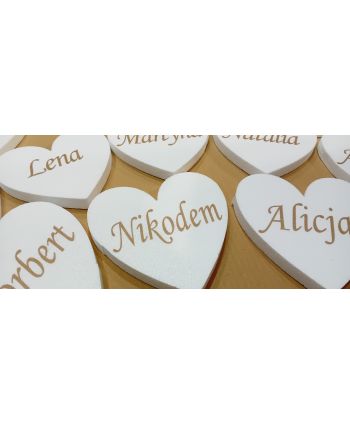 Serce styropianowe o wymiarach 20x20cm z imieniem dziecka.
