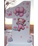 Pamiątkowa kartka -statuetka z okazji pierwszych urodzin wraz z personalizowanymi życzeniami na odwrocie.
