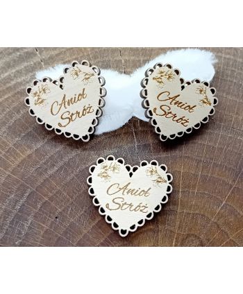 Piękne drewniane serca z napisem Anioł Stróż do makramowych lub szydełkowych aniołków lub innych produktów.