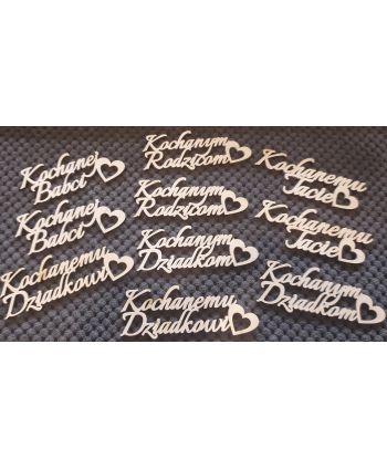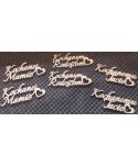 Wymiary napisu: 15cm x 8cmNapisy wycięte laserowo ze sklejki brzozowej o grubości 3mm.