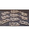 Drewniane zawieszki z tekstem.