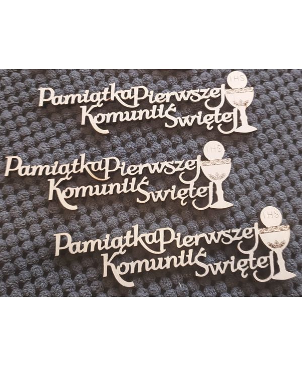 Napisy wycięte laserowo ze sklejki brzozowej o grubości 3mm.